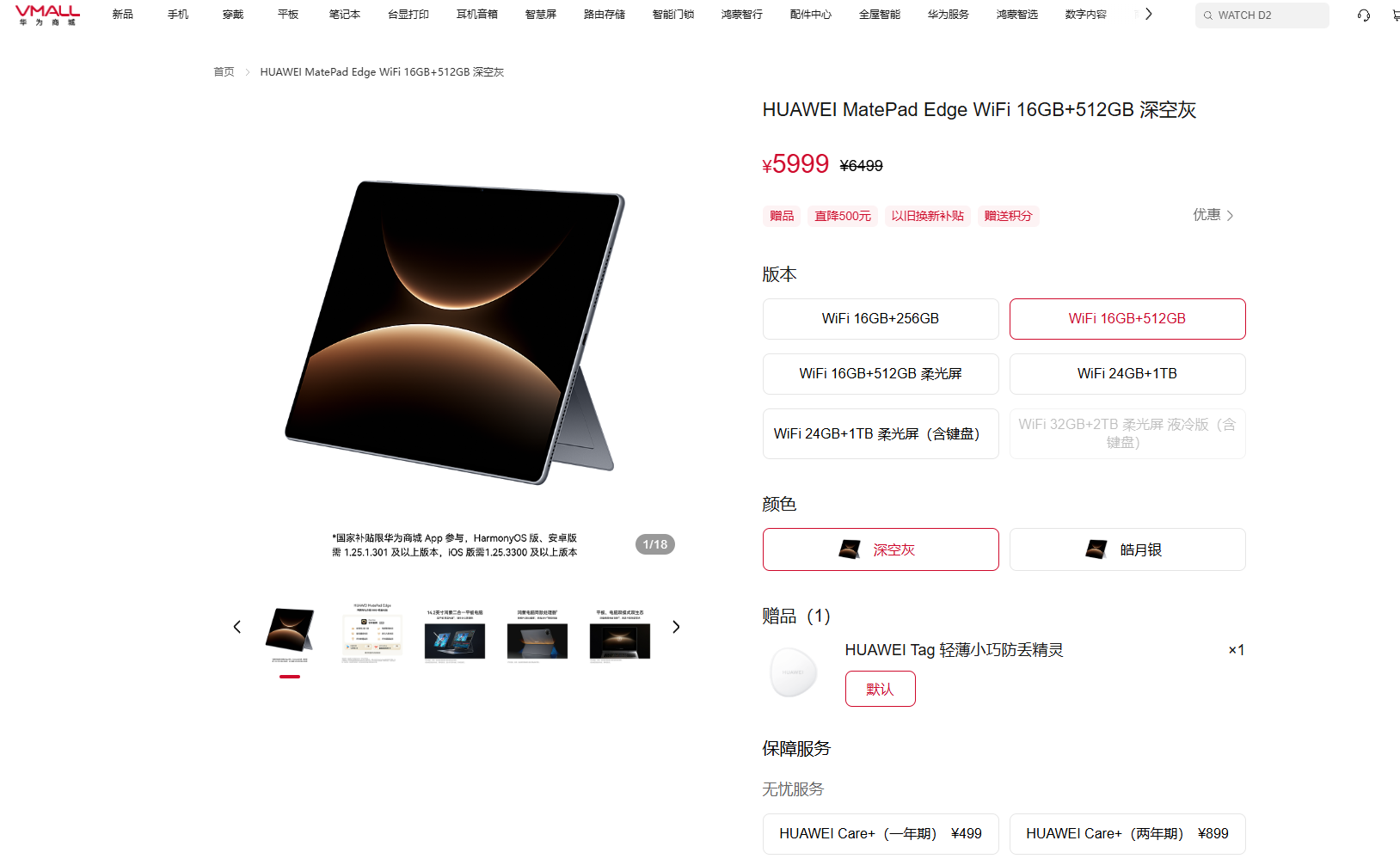 据了解,华为MatePad Edge于去年11月25日发布,是首款鸿蒙二合一平板电脑,用户只需在屏幕上四指横划,即可在平板模式与电脑模式之间快速切换。