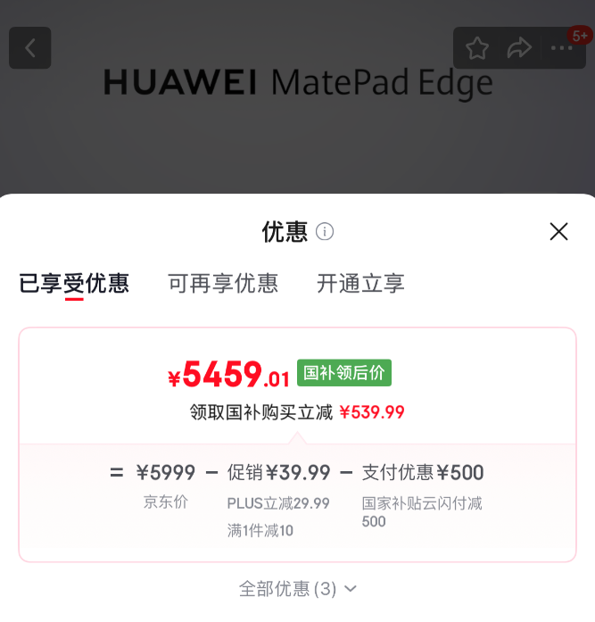 在上游内存及存储芯片价格持续走高、部分国产平板此前已出现涨价背景下,华为MatePad Edge此轮调整可谓逆势降价。