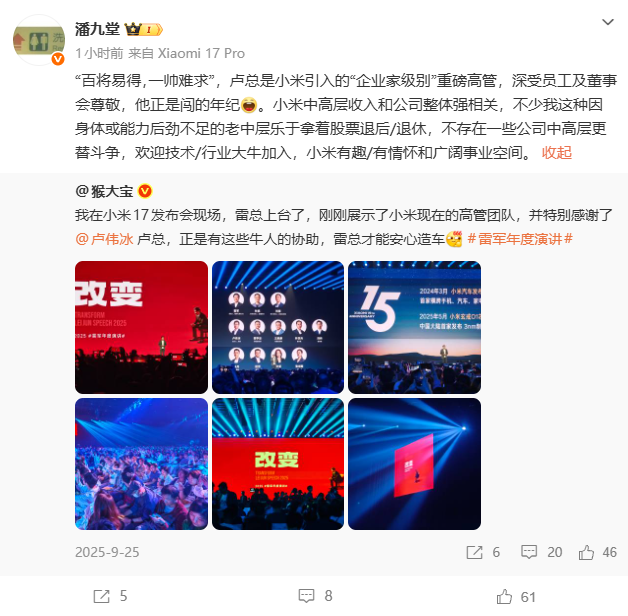 百将易得 一帅难求!潘九堂大赞卢伟冰:小米引入的企业家级重磅高管
