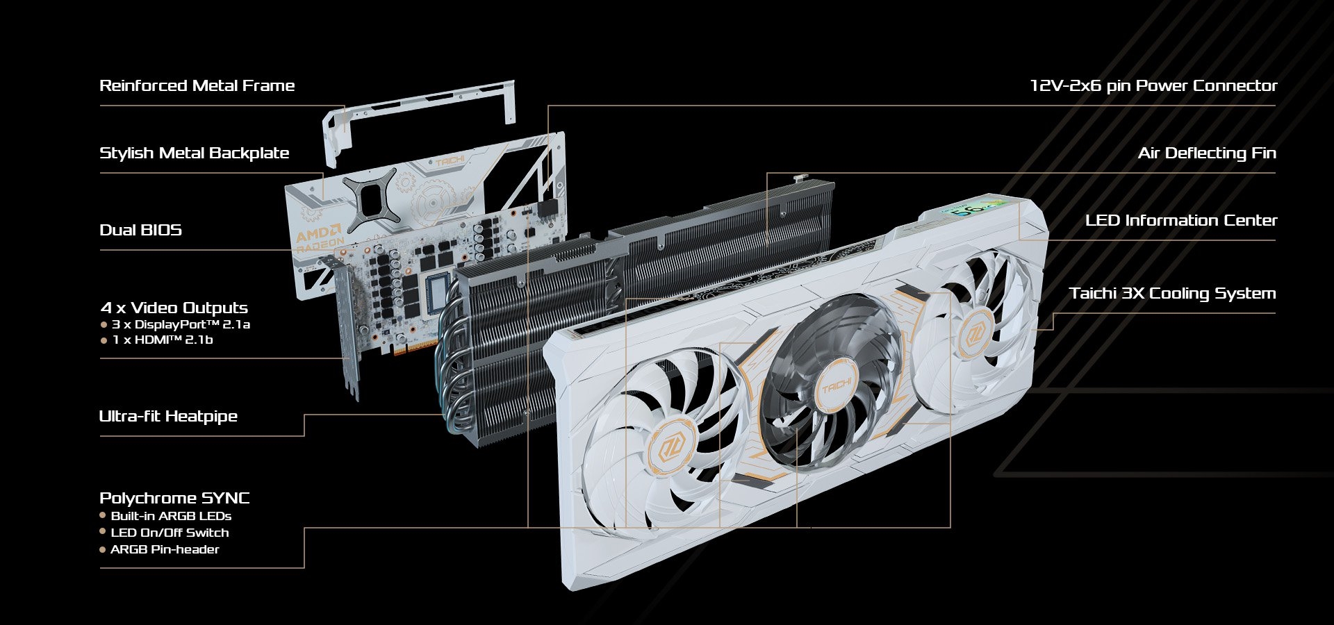 华擎发布RX 9070 XT太极白色版:自带屏幕、16针供电接口