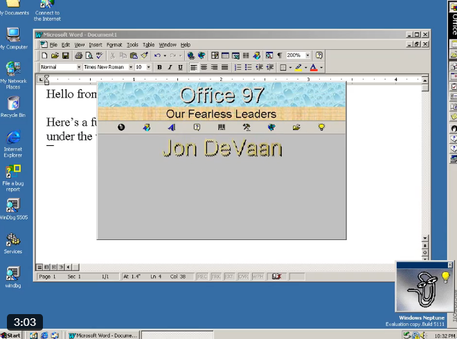 快科技1月14日消息,近日,一个隐藏了近30年的Office 97彩蛋被意外发现,让无数怀旧的用户感到惊喜。