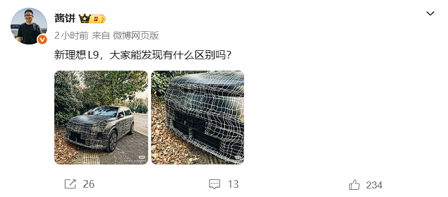 快科技1月14日消息,就在今日有博主曝光了两张新一代理想L9的实车谍照,并询问发现和现款对比有什么区别。