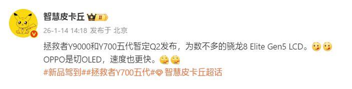 根据博主“智慧皮卡丘”最新爆料,联想拯救者Y700第五代将于Q2发布,这次性能进一步升级,将搭载第五代骁龙8至尊版处理器,这也是目前安卓的巅峰旗舰芯。