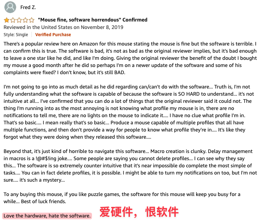 可惜这样的厂商还是太少了,大部分外设品牌依旧假装没听到用户呼声。你看 2019 年就有人开始吐槽罗技软件,六年过去了,罗技软件还越来越臃肿了。。。