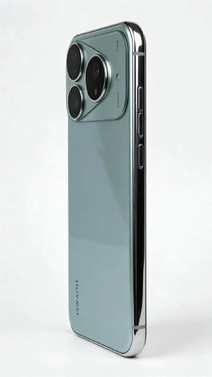 从渲染图可见,新机采用深邃绿色机身,背部摄像头模组是视觉焦点,Pura系列标志性的三角形镜头排列得以延续,同时整体被嵌入一个更规整且突出的横向矩形平台内,镜头旁印有“XMAGE”标识,机身采用直屏设计。