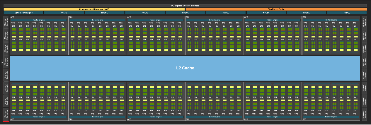 完整的GB202核心有16组32bit显存控制器,组成512bit显存位宽,RTX 5090 D v2采用的是GB202-240核心,砍掉了4组显存控制器。