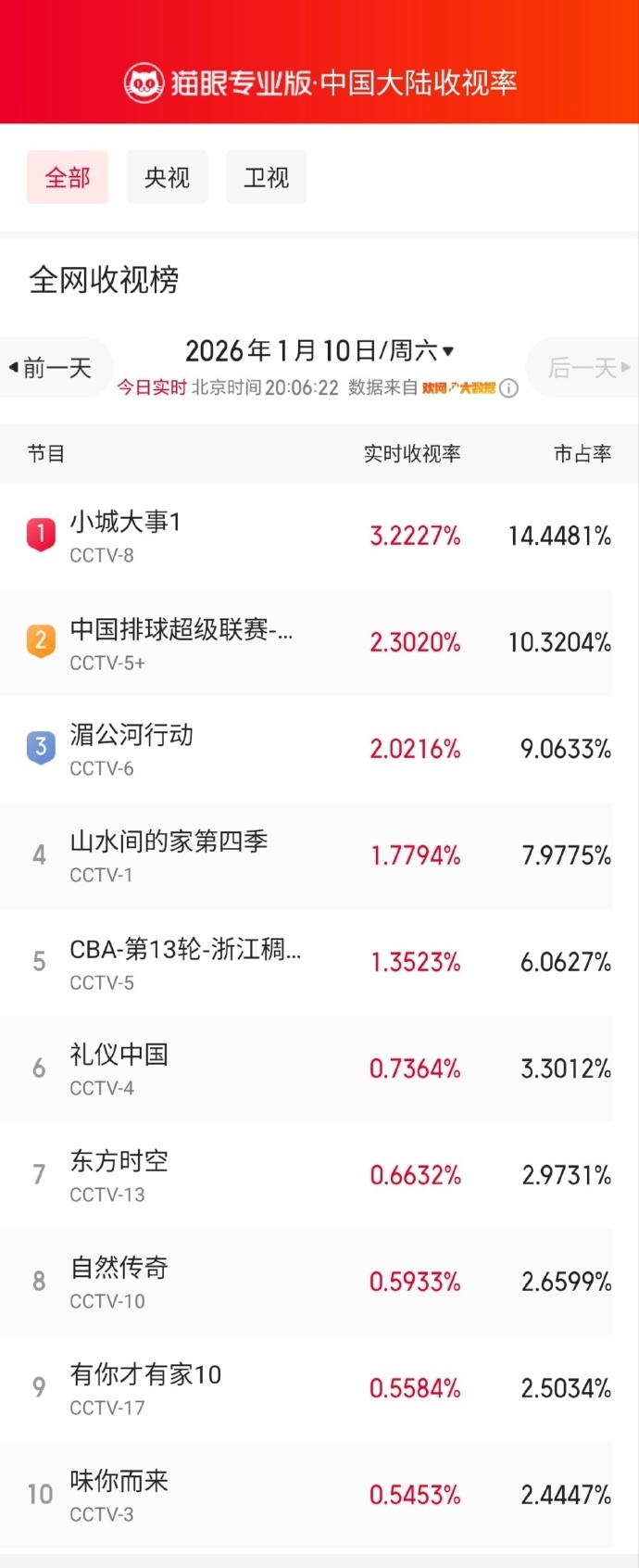 开播首日便斩获全网收视冠军,据猫眼专业版实时数据显示,该剧在CCTV-8播出的首集实时收视率达3.2227%,市占率14.4481%。