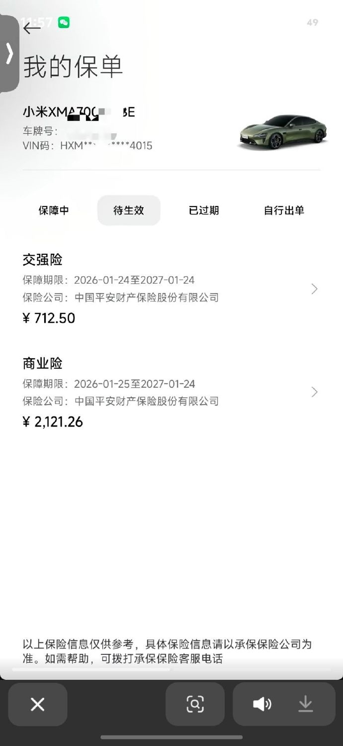 快科技1月12日消息,近日,一位小米SU7车主分享的续保保单引发围观。