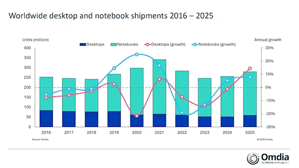 2025年全球PC出货量近2.8亿台 笔记本超2.2亿台