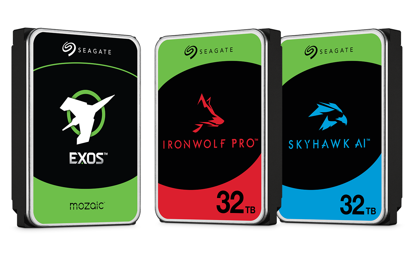 此次发布的新品涵盖三大系列,分别是面向企业级的银河Exos、适合视频监控的酷鹰SkyHawk AI、针对NAS存储的酷狼IronWolf Pro。