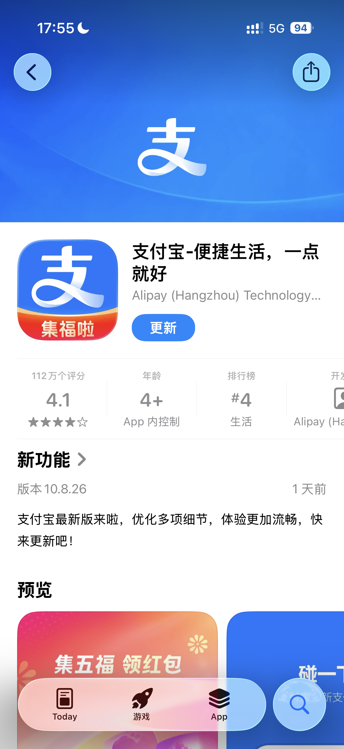 苹果App Store页面显示,今年的集五福活动依然可获得红包奖励,且奖励可以翻多倍。