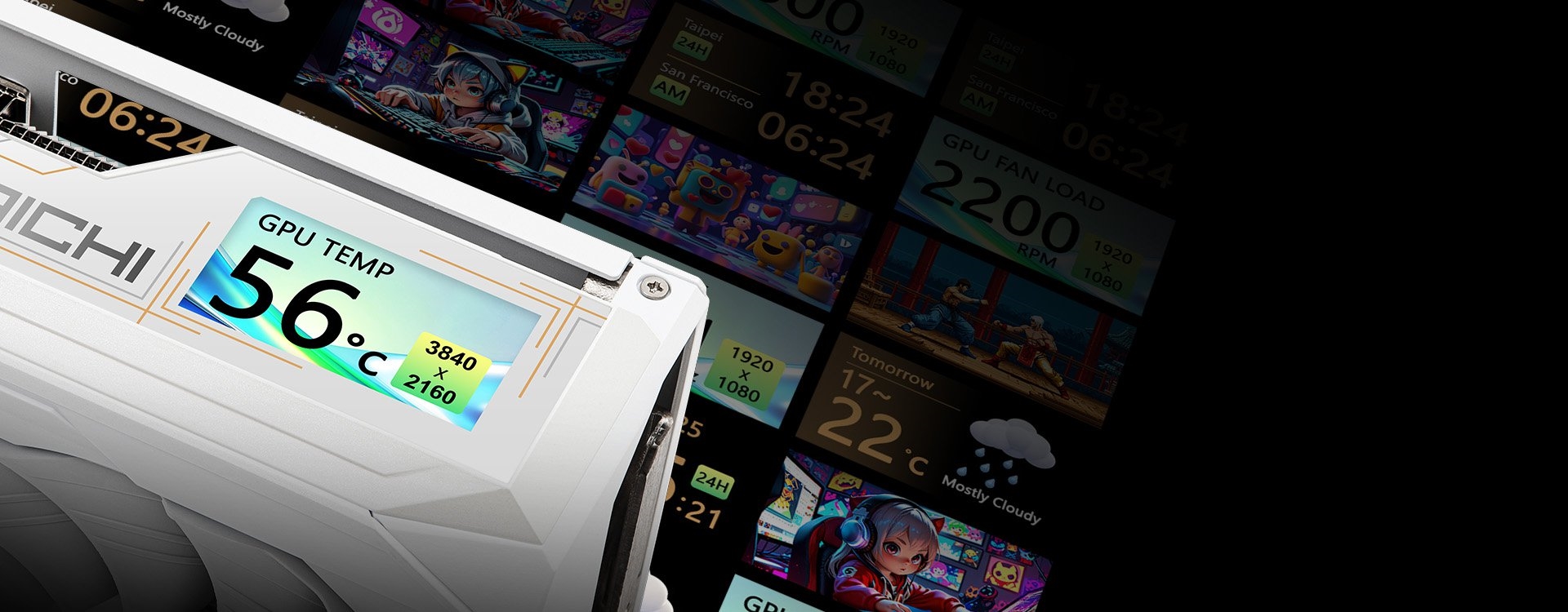 华擎发布RX 9070 XT太极白色版:自带屏幕、16针供电接口