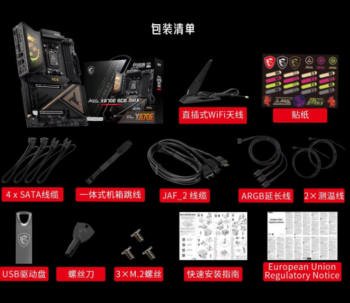 该主板专为AMD锐龙9000系列处理器(包括9950X3D/9800X3D/9950X等型号)深度优化,基于AMD X870E芯片组与AM5接口,采用聚合式创新设计,旨在为高端玩家与创作者提供全面的高性能平台。