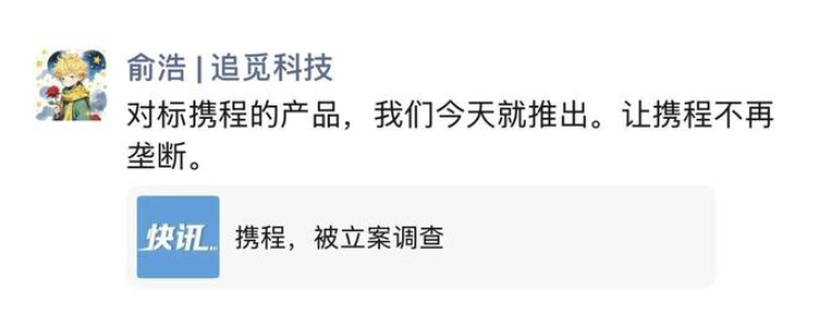 携程被立案调查!追觅CEO俞浩:对标携程的产品今天推出