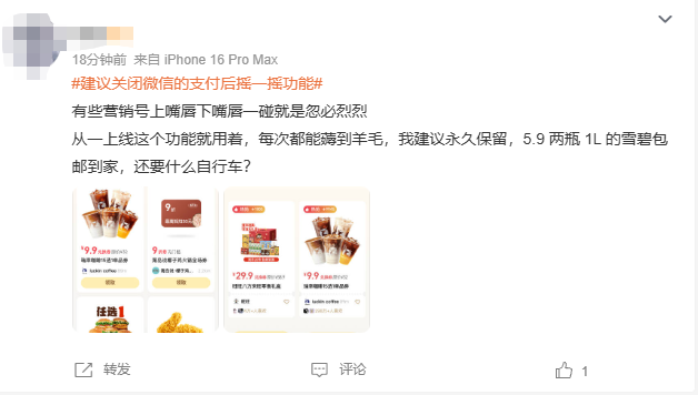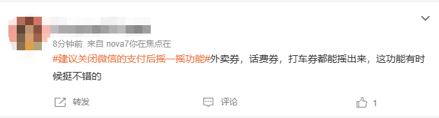 建议关闭微信支付后摇一摇功能上热搜 网友:每次都能薅到羊毛 为啥要关闭