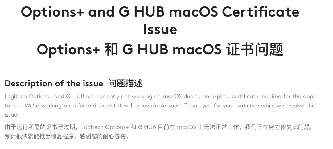 其实原因很简单,就是罗技应用证书到期了。